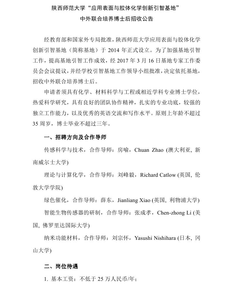 捷克论坛 “应用表面与胶体化学创新引智基地”中外联合培养博士后招收公告