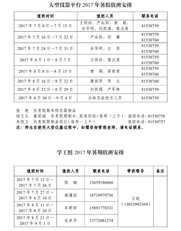 捷克论坛 2017年暑假值班安排