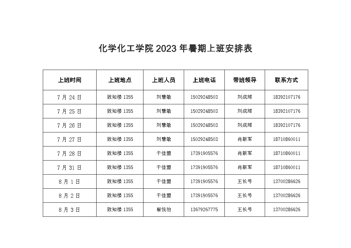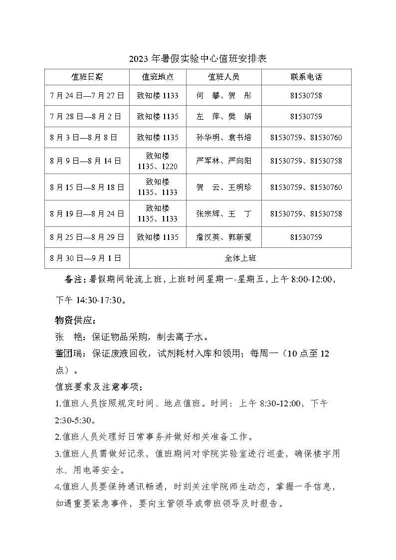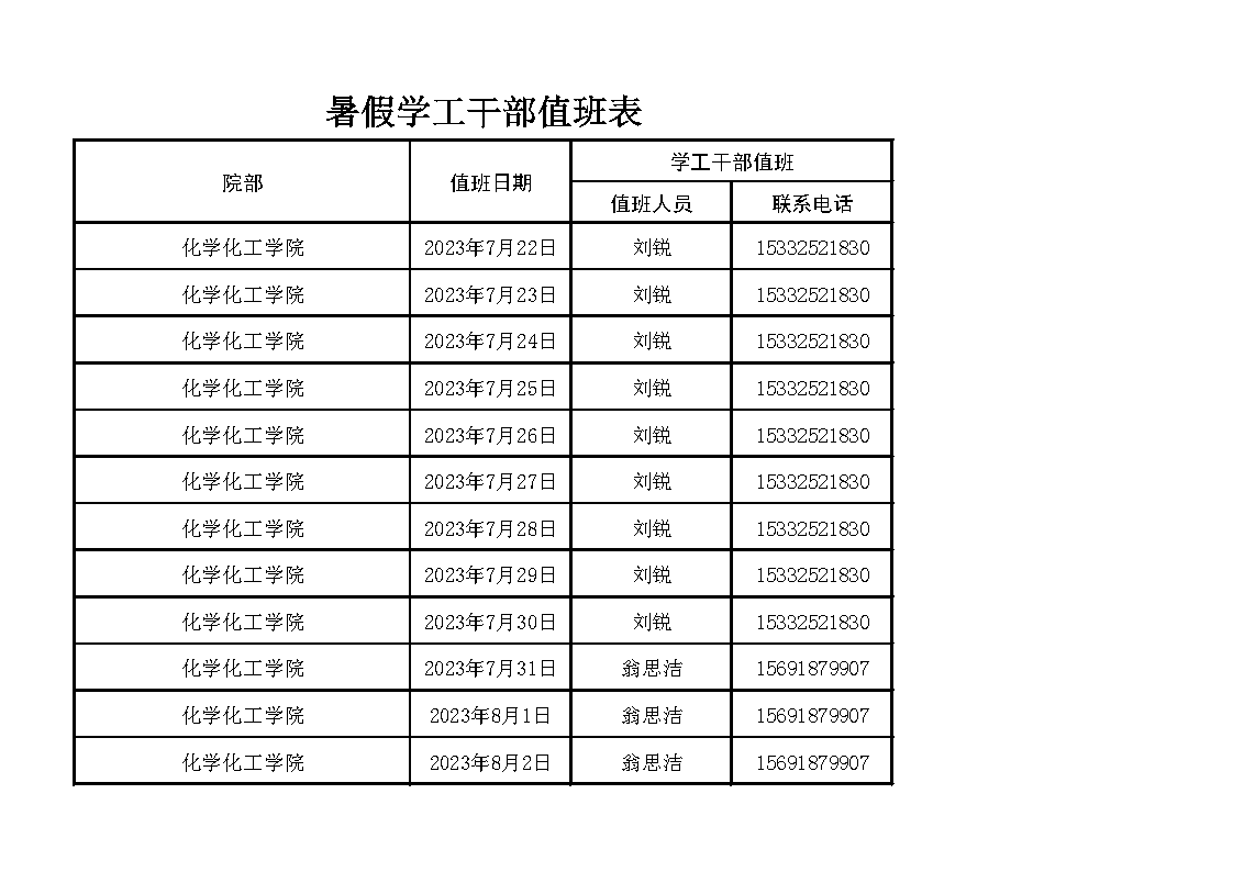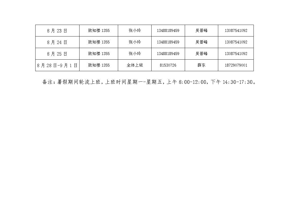 捷克论坛 2023年暑假值班安排表