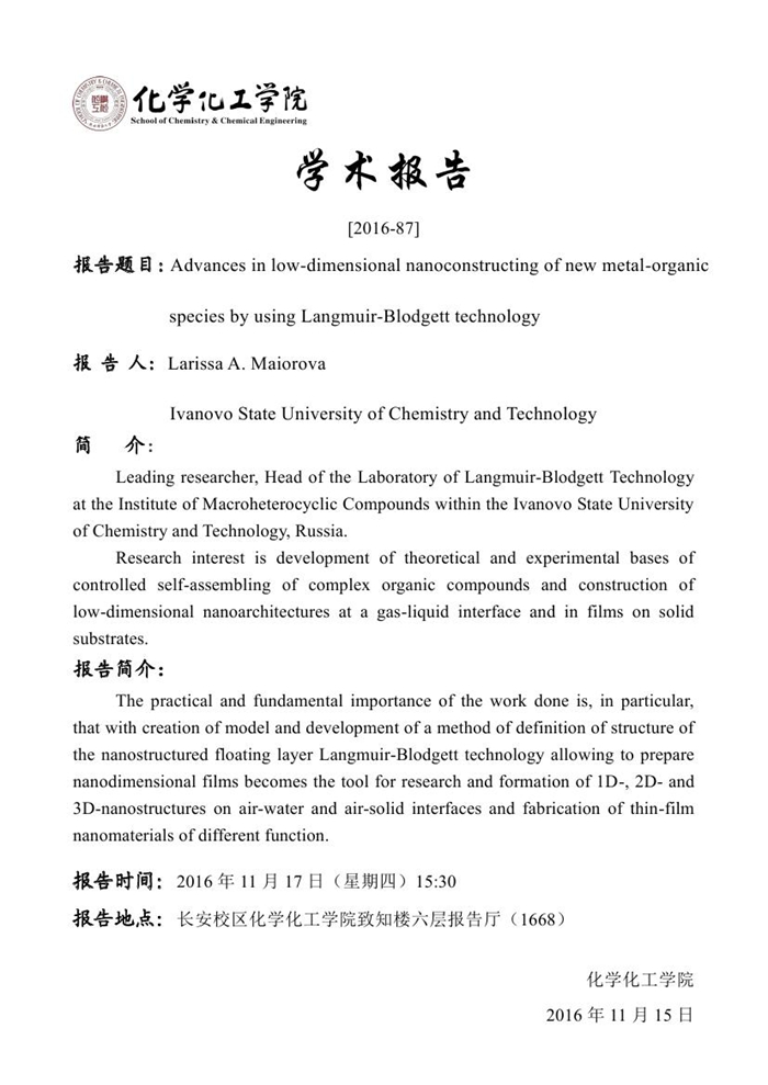 学术报告预告[2016-87]