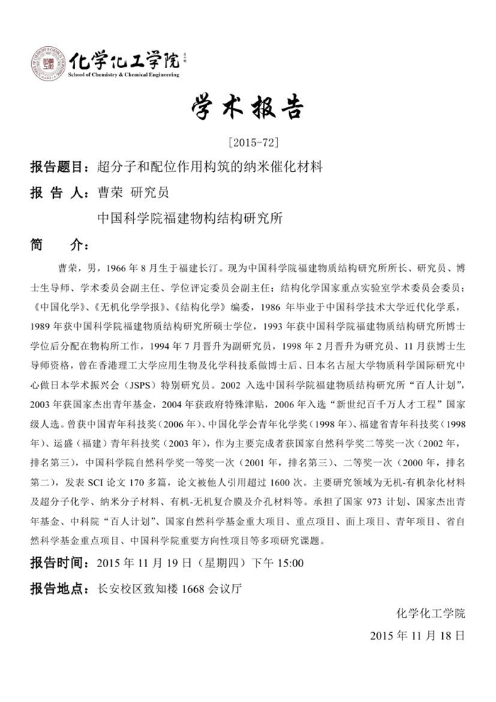 学术报告预告[2015-72]