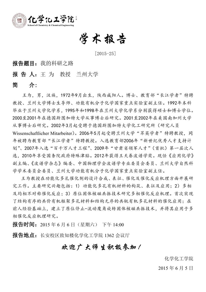 学术报告预告[2015-25]