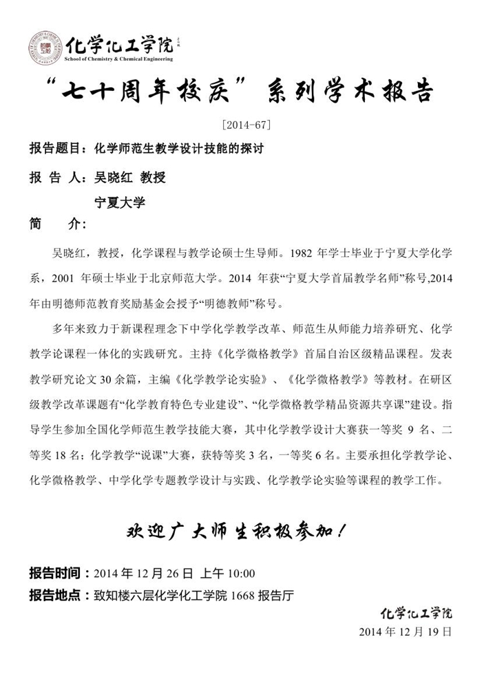 “七十周年校庆系列活动” [2014-67]