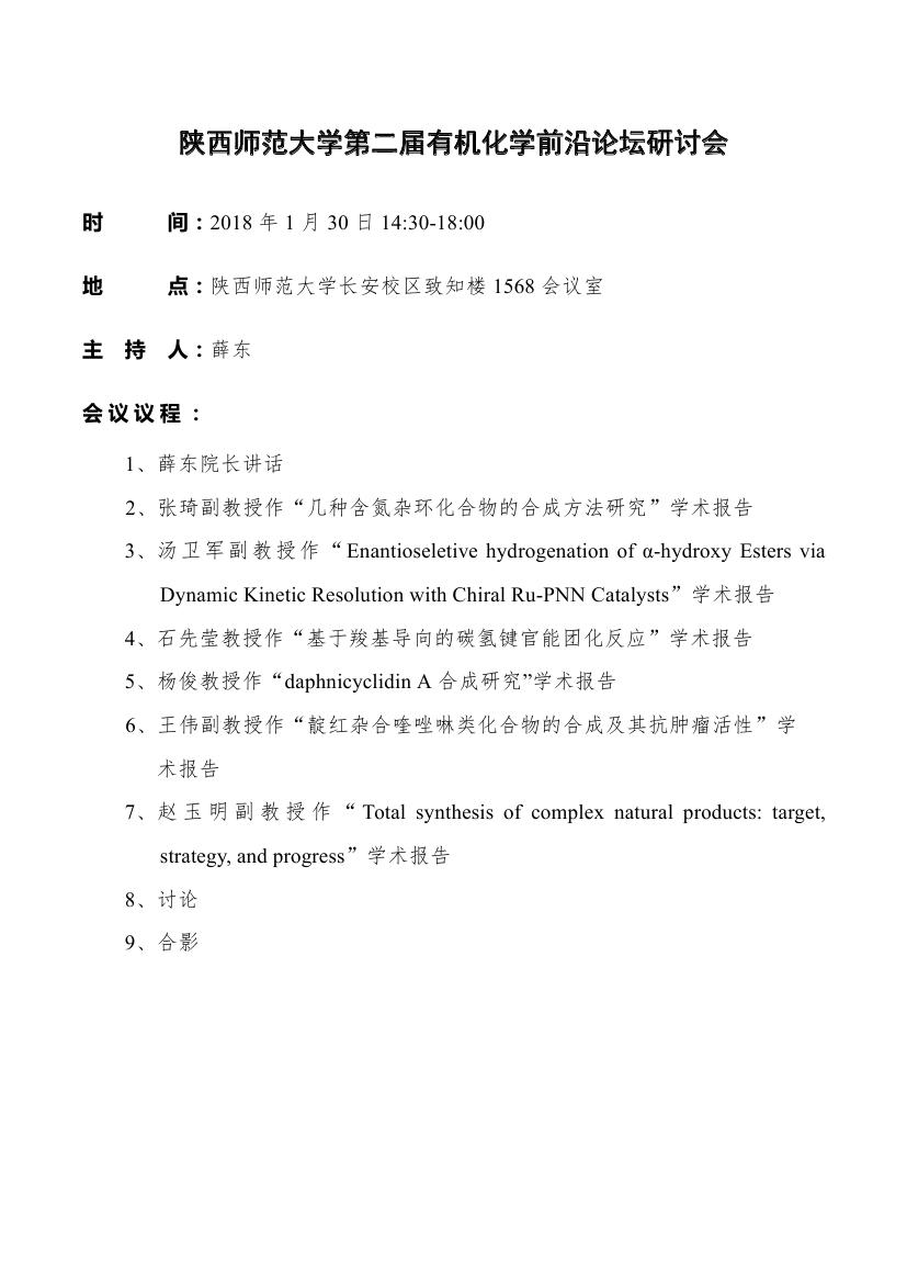 捷克论坛 第二届有机化学前沿论坛研讨会