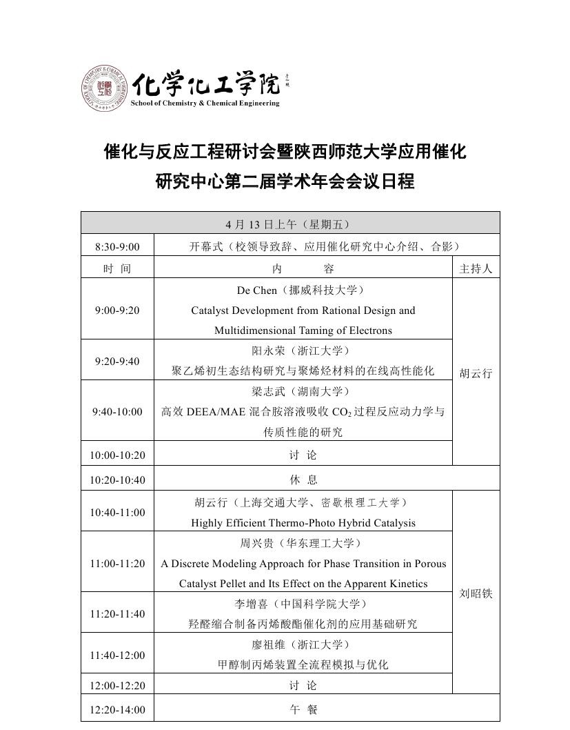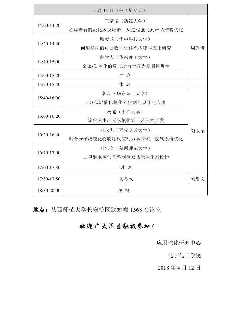 催化与反应工程研讨会暨捷克论坛 应用催化研究中心第二届学术年会会议