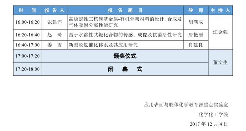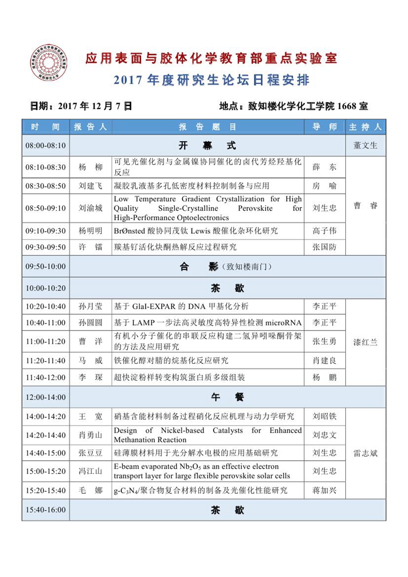 应用表面与胶体化学教育部重点实验室2017年度研究生论坛