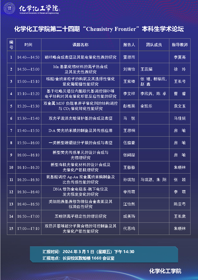 捷克论坛 第二十四期“Chemistry Frontier”本科生学术论坛