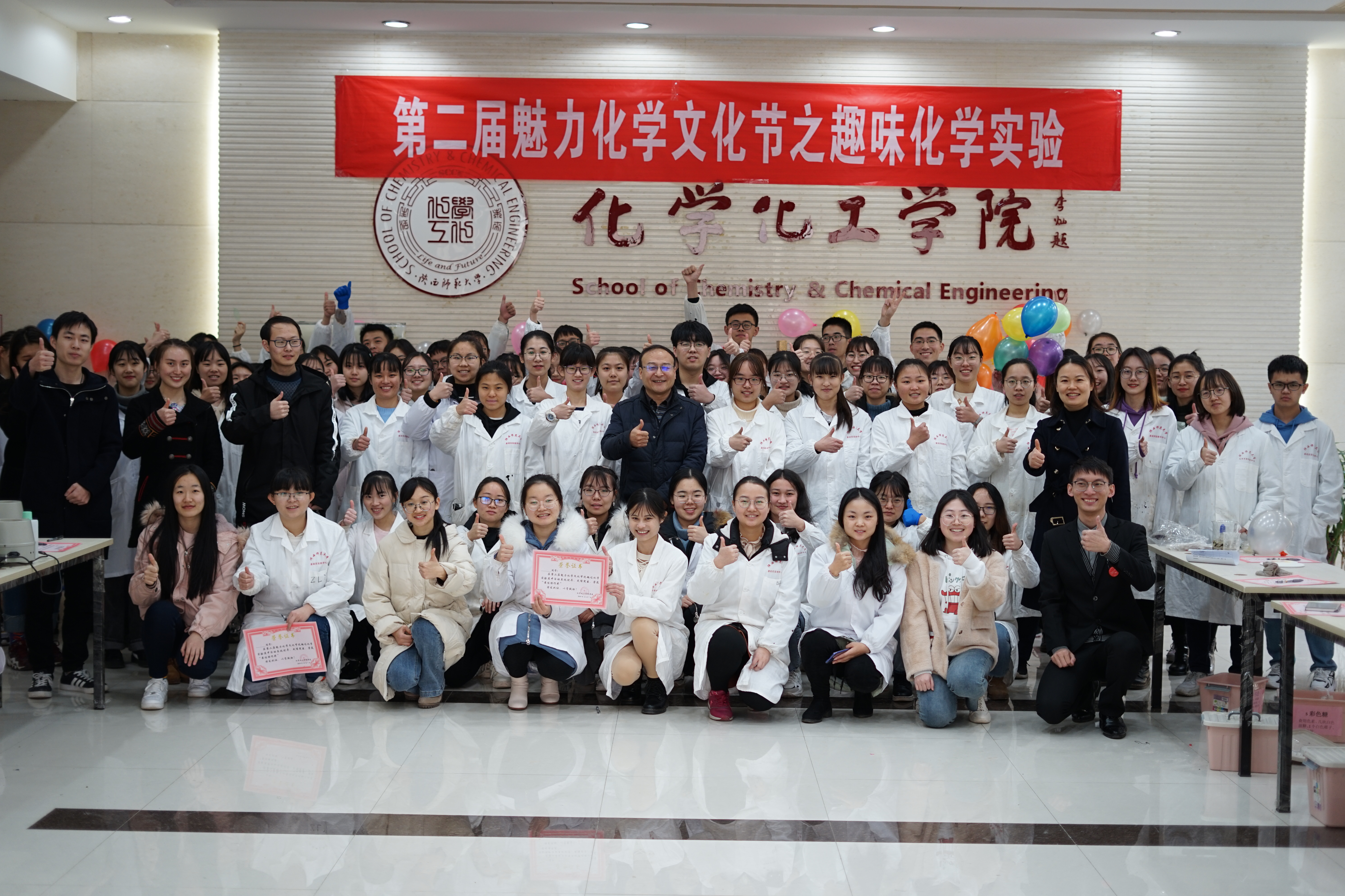 “第二届魅力化学文化节之趣味化学实验展”活动在致知楼一层大厅顺利开展,17组团队均由2017级、2018级和2019级本科生组成,积极参与并完美展示了趣味化学实验的魅力。