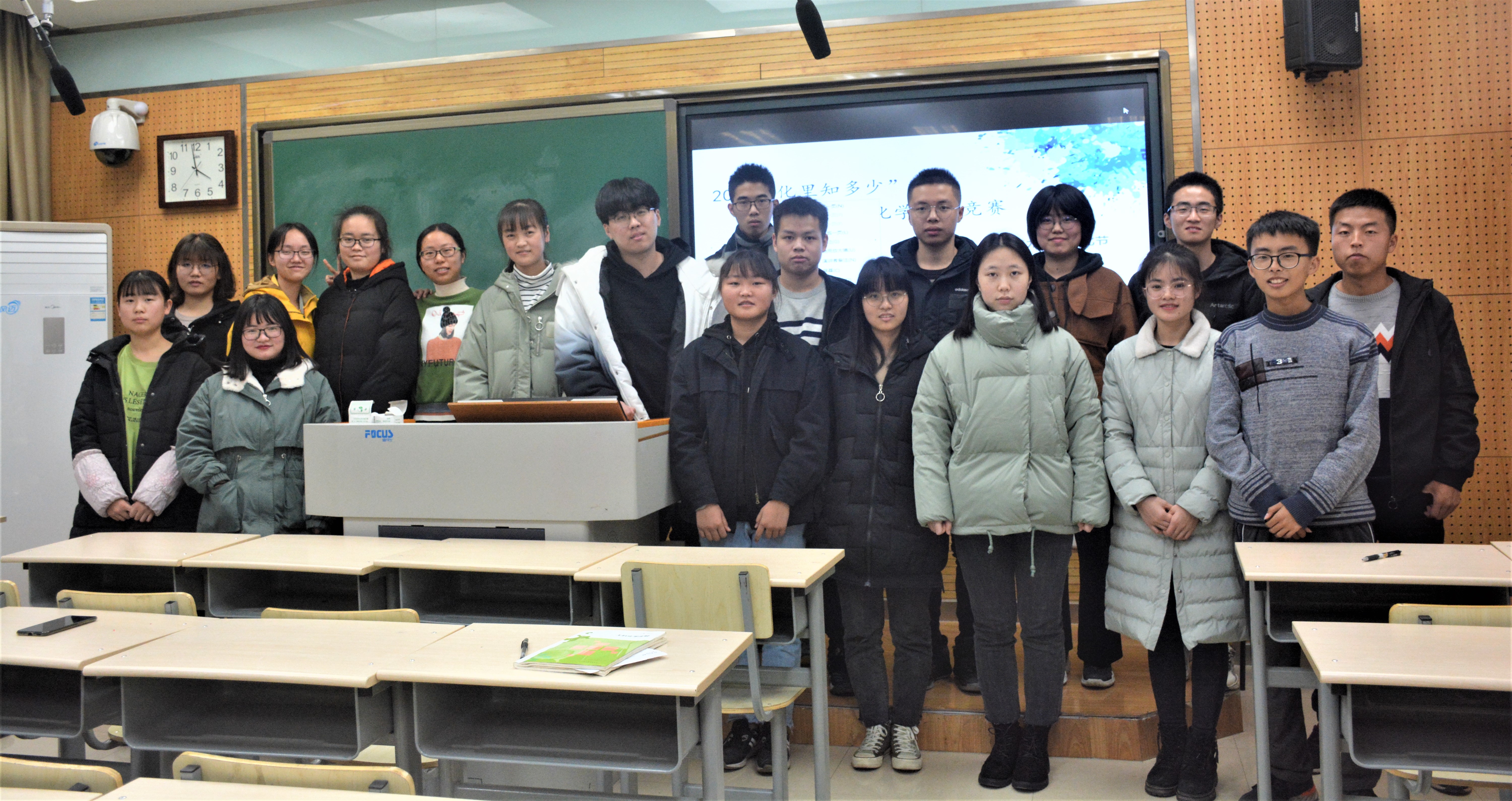 在竞赛过程中,参赛队伍热情高涨、积极作答,全场氛围良好。队员们反应迅速、应答如流,有时主持人题目还未读完,各个队伍已先抢答出来了。他们充分运用自己的化学知识和表达能力,在“你“化”我猜”环节中将化学词语绘声绘色的描绘出来。最后,在团队的共同努力下完成了所有题目。