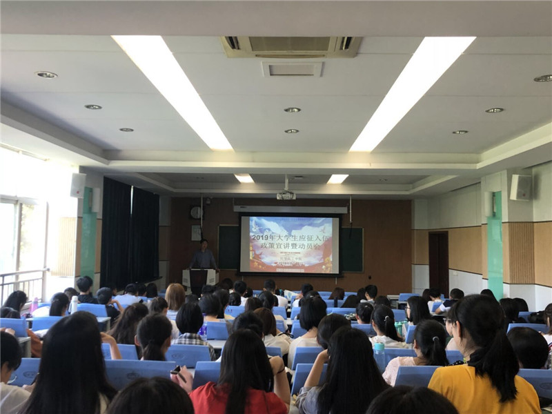 为全面做好学院2019年征兵入伍宣传工作,帮助学生了解相关征兵政策,动员适龄热血青年积极投身军营、报效祖国,5月22日下午16:30,大学生应征入伍政策宣讲会在雁塔校区教学四楼举办,宣讲会邀请到我校武装部国防教育科科长秦维亭,2017级辅导员龙卓华、2018级辅导员翁思洁和100多名学生代表参加。