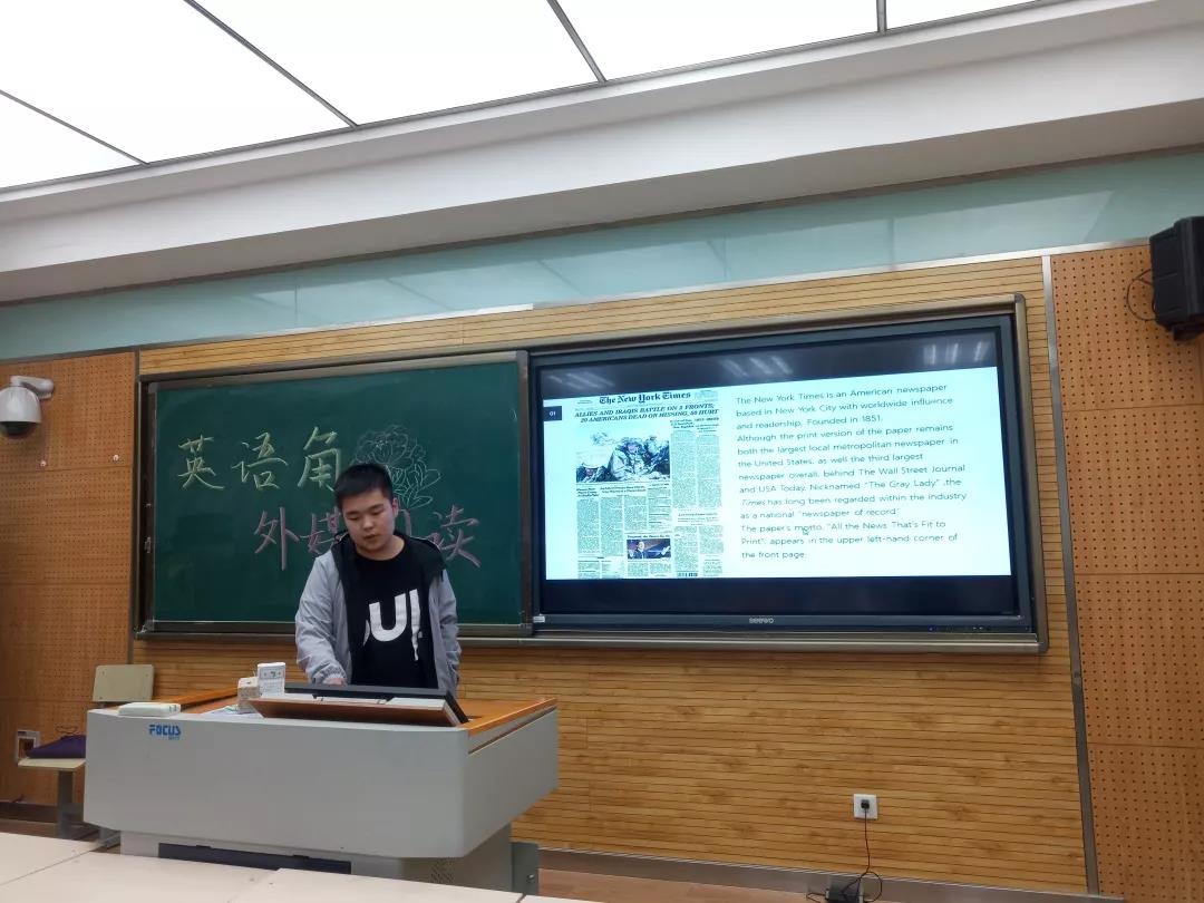 活动开始后,主持人发表活动致辞,阐释了举办此次活动的意义与英语学习的重要性。参与分享的同学结合制作的PPT,用文字、图片、动画等多种形式向同学们介绍了时代周刊等世界著名报刊。同学们认真倾听,收获颇丰。