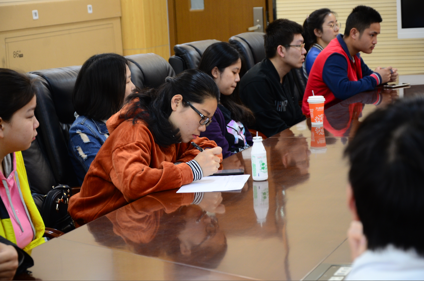 王晓向参会同学分析了当前就业形势,介绍了学校和学院非师范生就业进度的情况,学生就业工作已经进入攻坚克难的关键时期,希望同学们把握好机遇,尽可能加快就业进度,谢遵园在前期就业情况筛查的基础进行了就业情况和进度的更新,向每位同学询问了目前的就业进展情况,36名同学中,已完成签约或协议书正在签署中的有14人,选择继续备战研究生考试有10人。王晓和谢遵园详细询问了同学们在就业过程中遇到的问题,并结合往届生的就业案例给予了相关指导。