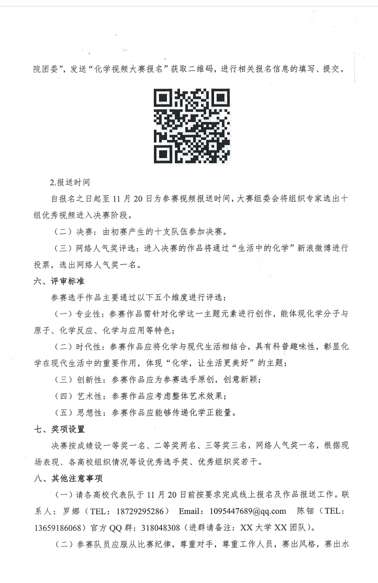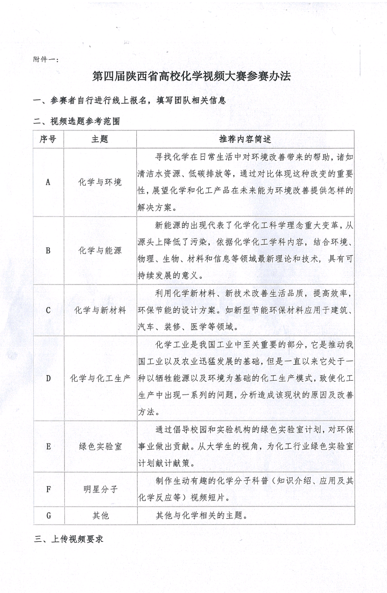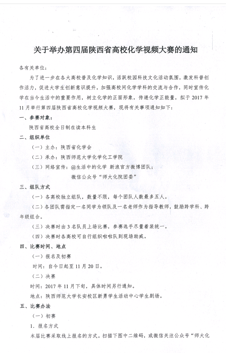 【通知】关于举办第四届陕西省高校化学视频大赛的通知