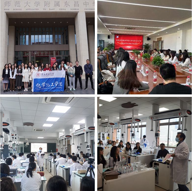 东昌中学薛志明校长做了“东昌中学的创新特色发展”的报告,他介绍了本校的特色,从东昌中学金融素质培育特色课程体系的整体构建情况,给同学们详细介绍从特色体系开发到校本课程实施的总体过程,结合上海经济发展,使同学们触动很大。随后,同学们来到教学实验室旁听了东昌中学唐增富老师讲授的实验课——利用分光光度计测定菠菜中铁离子的含量。唐老师深入浅出,熟练应用数字化课堂,采用通俗易懂的方式去讲解实验中晦涩难懂的知识点,并且将课堂知识与生活实际联系起来,帮助学生更好地将在学校学习到的知识应用于实践。课后,同学们与唐老师进行了交流,了解了上海市高中化学教材的编写特点和教学目标定位。