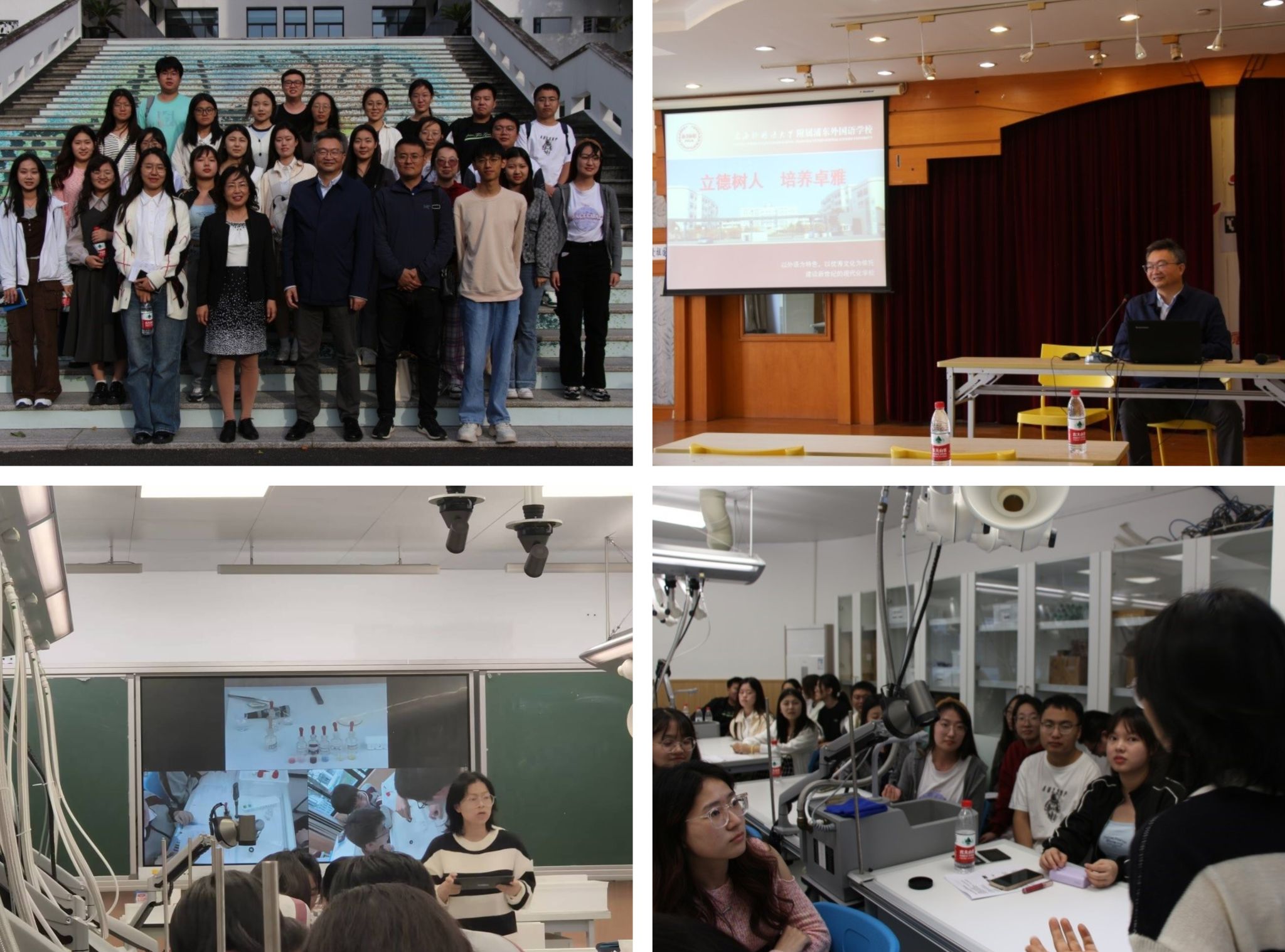 浦东外国语学校董俊副校长为同学们做了“立德树人 培养卓雅”的报告,介绍学校基本情况,特别介绍了其外语特色办学和卓雅教育理念,让同学们看到了浦东外国语学校学生出众的外语能力和优秀的综合素质。在“离子反应和离子方程式”的化学课上,蒋晓莉老师将化学实验和理论相结合,同学们在动手做实验的过程中理解离子反应的知识,将化学实验的作用在课堂上展现的淋漓尽致。课后,同学们与蒋老师进行了交流,就同学们提出的问题,蒋老师给出了引人深思的解释,同学们很受启发。课后,同学们在两位化学教师的陪同下参观了浦东外国语学校的校园,做了进一步交流。
