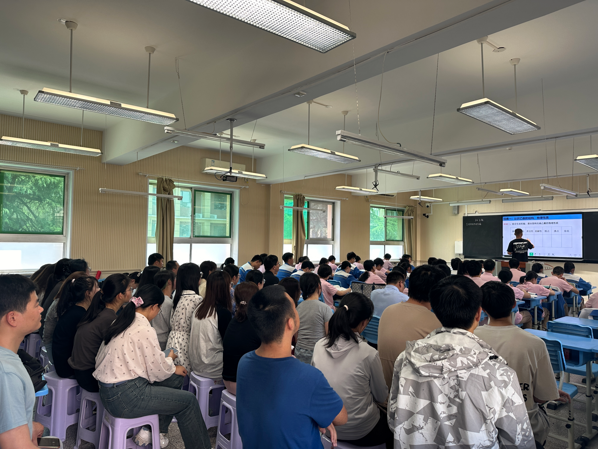 师大附中王文琦老师和尚涛老师开展了两节别开生面的公开课。王文琦老师讲授了人教版高中化学必修2的内容《乙醇与乙酸》第二课时的《乙酸》,尚涛老师讲授了《甲醛的功与过》。