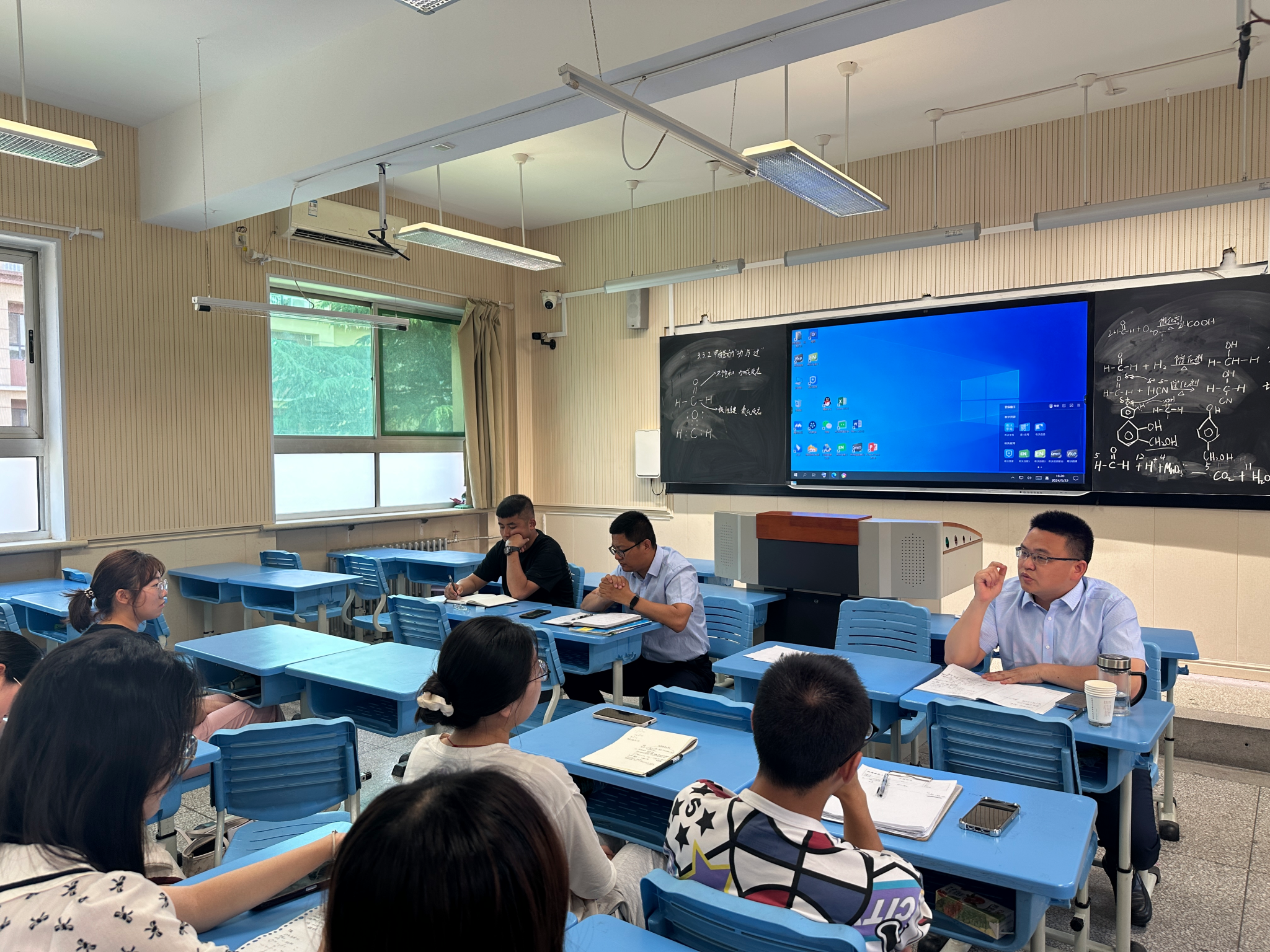 之后,同学们与二位老师以及化学学科组长罗春老师进行了教学研讨。
