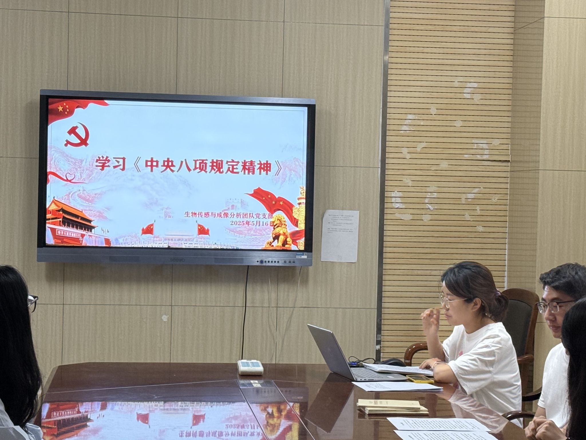 生物传感与成像分析研究团队研究生党支部开展了“学习中央八项规定精神,筑牢廉洁防线”主题党课。支部书记指出学生党员作为新时代的青年先锋应时刻保持政治敏锐性,以高度的政治自觉和行动自觉践行中央八项规定精神。支部成员纷纷表示要将学习成果转化为实际行动,在学习和生活中发挥先锋模范作用,时刻保持清醒头脑,自觉抵制各种不良风气的侵蚀,以更加饱满的热情与更加扎实的作风为学校发展和社会进步贡献青春力量。