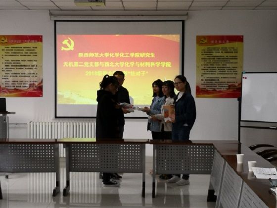 研究生无机第二党支部与化材院2018级硕士研究生党支部进行了一对一结对,并互赠书籍。
