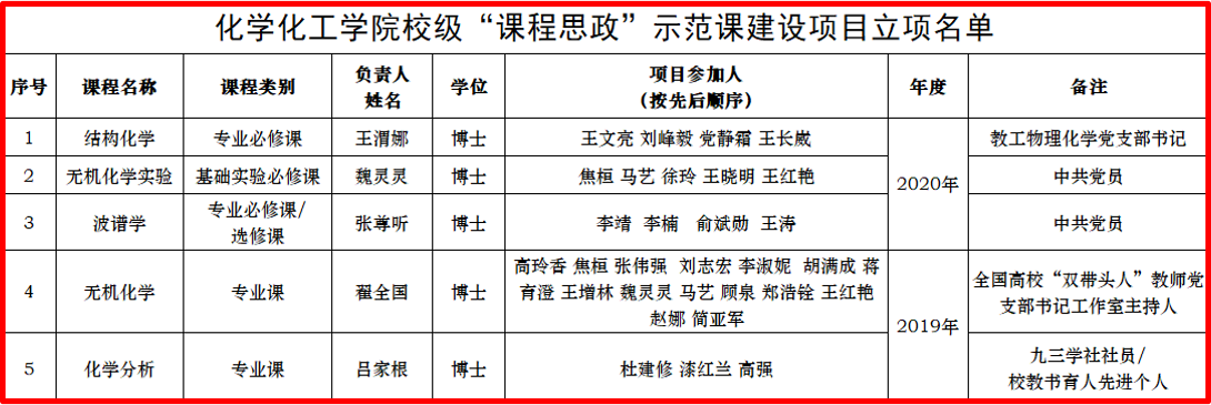 骨干示范引领,推进“课程思政”建设。学院教师党支部坚持育人导向、突出价值引领,主动肩负起推进“课程思政”建设的主题责任。一是支部书记和党员骨干教师带头申报“课程思政”项目。在去年无机教工党支部书记翟全国主持申报课程思政示范课建设项目之后,教工物理化学党支部书记王渭娜、教工无机化学党支部教师党员魏灵灵主持申报了《结构化学》、《无机化学实验》课程思政示范课建设项目。二是带动全体教师树立“课程思政”理念。教工有机化学党支部结合社会热点事件展开研讨,引导支部教师挖掘专业知识中的思政教育功能、教育元素、融入路径,润物无声地达成立德树人目标。三是名师带路探讨“课程思政”建设思路。教工物理化学党支部党员、国家级教学名师房喻老师带领支部教师共同探讨“课程思政”建设思路。房老师强调要从学科特色出发,强化课程思政建设和学科育人,着重培养学生养成科学思维和正确的价值观。