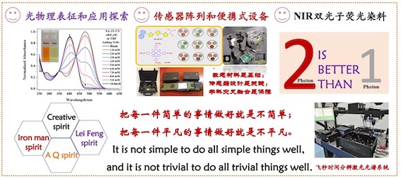 研究兴趣将集中关注近红外双光子荧光染料的设计、制备和应用研究,目标实现对水体、细胞和生物组织内重要物质的灵敏荧光检测和高效生物成像。