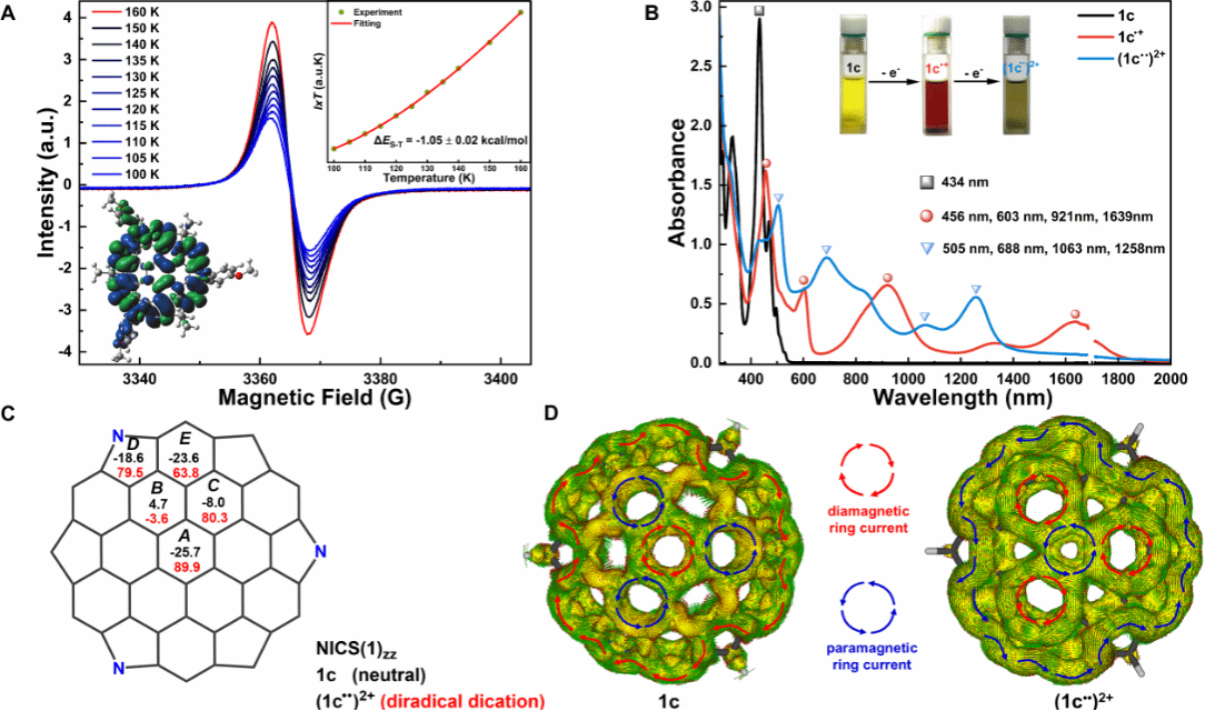 该工作得到国家自然科学基金、中国博士后基金、陕西省自然科学基础研究计划等项目的支持。感谢西安交通大学饶彬研究员和焦佼副教授在双自由基性质研究方面的建议和帮助;感谢德国乌尔姆大学常兴茂博士对单三能隙值拟合计算的帮助;感谢实验中心孙华明老师、樊娟老师和郭新爱老师在化合物结构表征中提供的实验技术支持和帮助;同时也感谢2023级硕士研究生胡佳乐同学在相关实验与测试中的协助。