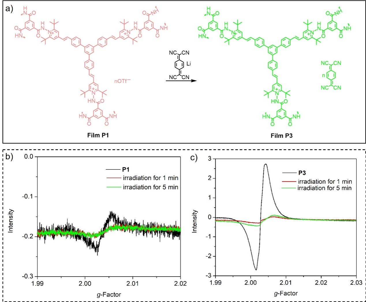 图3 薄膜捕获自由基的机制以及光照前后的电子顺磁共振(EPR)谱图