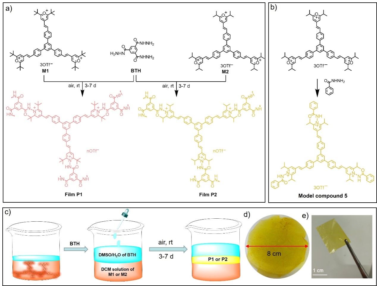 在本工作中,我们发展了一种新的温和界面聚合策略,利用不可逆的Katritzky反应,在CH2Cl2-H2O界面上,无需催化剂,且在室温条件下,即可制备出大面积、自支撑且具有多刺激响应性质的薄膜。这一创新性的界面制备方法无疑为薄膜材料的制备和应用开创了新的可能性。