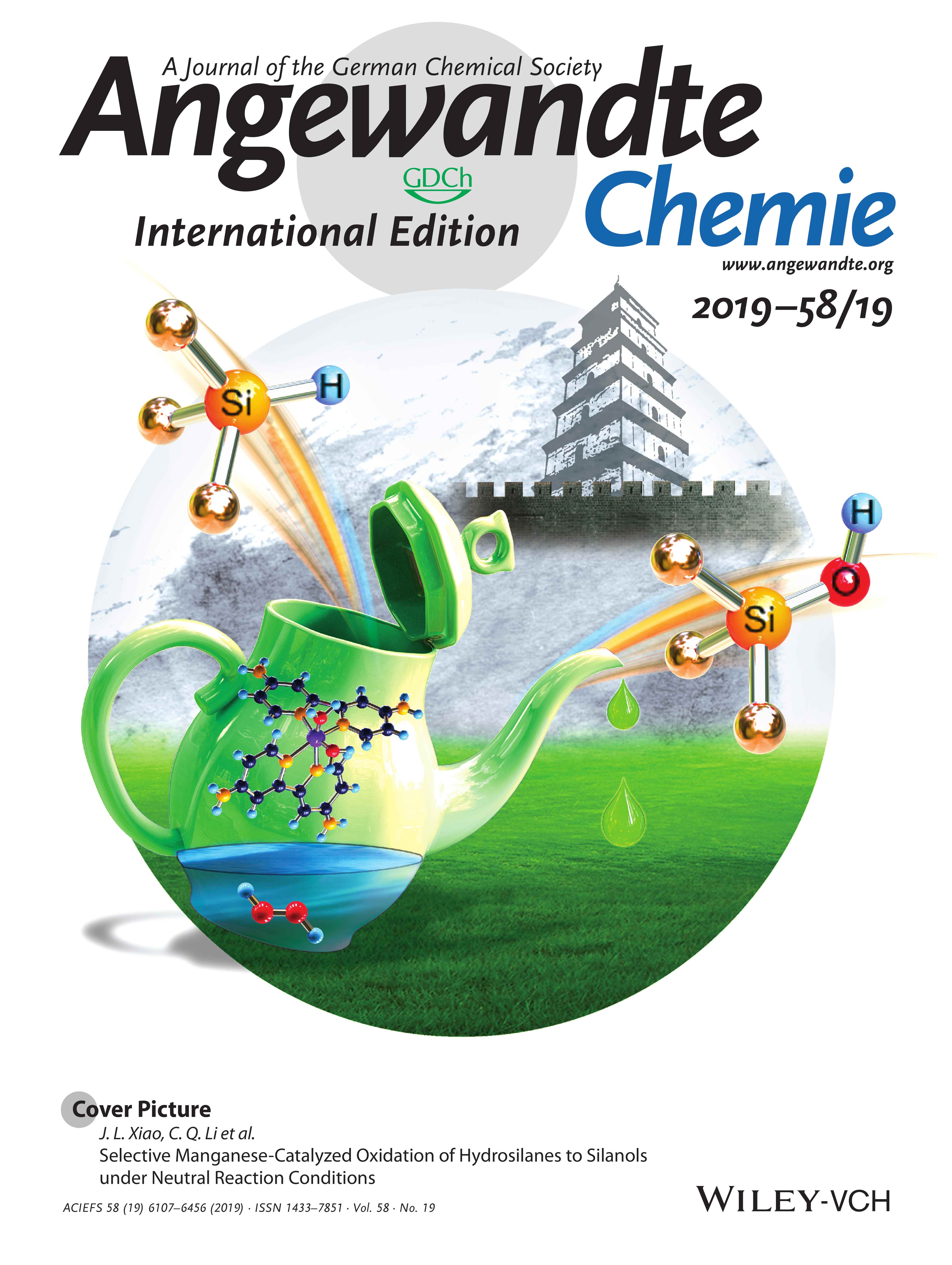 肖建良教授团队“绿色催化合成团队”, 李超群研究员小组通过发展富电子联吡啶型锰作为催化剂,以H2O2为氧化剂实现了对硅氢键的高效、选择性条件温和的氧化,解决了硅氢键氧化合成硅醇不过避免有硅醚副产物这一挑战性课题。这一研究成果以VIP文章在线发表在国际顶尖化学期刊《德国应用化学》(Angew. Chem., Int. Ed. 2019, 58, 6380 –6384)上,并被选前封面文章。最近文章也被“ChemViews”报道。硕士研究生王凯凯为该论文第一作者,肖建良教授和李超群研究员为论文共同通讯作者,捷克论坛