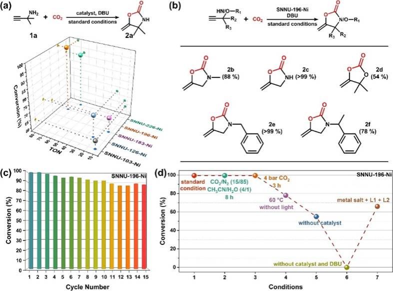 图5. psit-MOF光催化CO2与炔胺环化性能