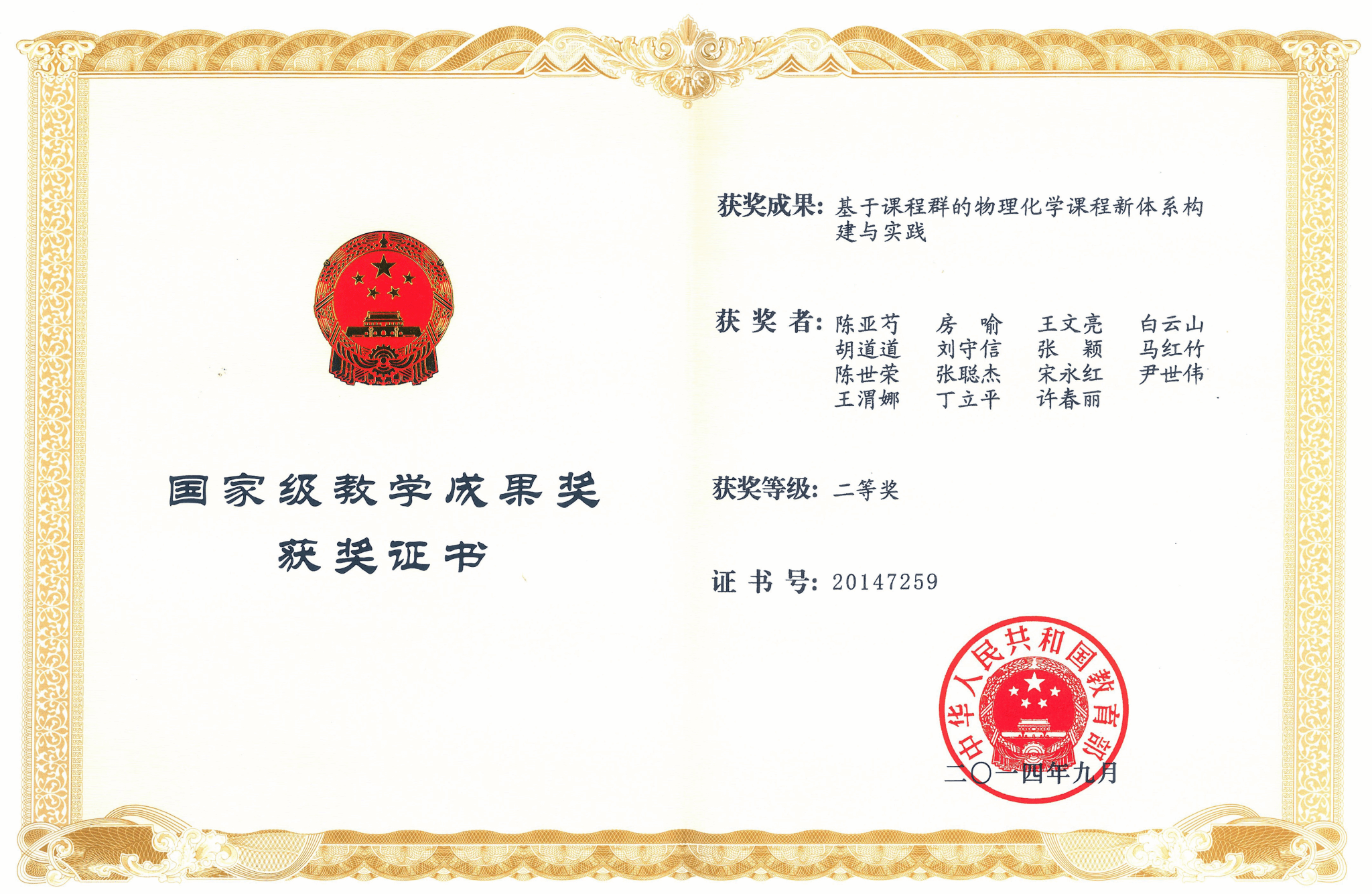 学院建有化学、化学虚拟仿真2个国家级实验教学示范中心,教育部西部高校化学专业(师范)虚拟教研室;拥有物理化学国家级教学团队,仪器分析、有机化学省级教学团队,无机化学省级课程思政教学团队;获高等教育(本科)国家级教学成果奖2项、高等教育(研究生)国家级教学成果奖1项;入选全国优秀博士学位论文1篇,陕西省优秀博士学位论文14篇,入选博士后创新人才支持计划3人。